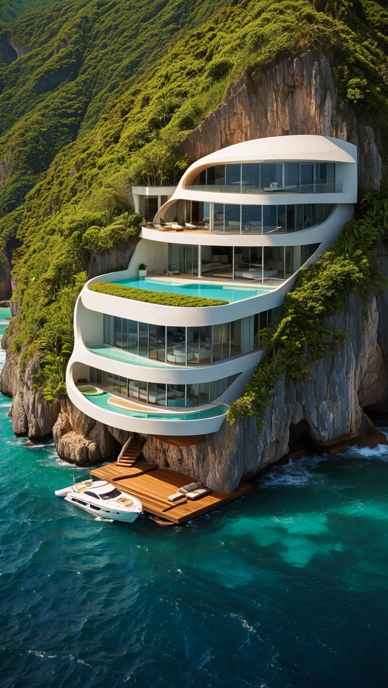 A photographic wide shot captures a traditional Japanese castle from a low angle perspective during daytime, emphasizing its imposing multi-tiered architecture against a clear teal blue sky. The castle features white walls with traditional dark gray tiled roofing arranged in multiple levels, creating a distinctive pagoda-like silhouette. Natural front lighting evenly illuminates the white castle walls and architectural details, while the centered composition creates perfect symmetrical balance. The structure rises from a substantial stone foundation wall constructed from large, irregularly shaped gray and brown stone blocks with visible mortar joints. Dense clusters of dark green vegetation, including trees and shrubs, grow along the base of the castle and partially obscure the stone foundation, adding organic contrast to the geometric architecture. The deep depth of field ensures sharp focus throughout the frame, from the foreground vegetation to the castle's highest tower. The cool color palette dominates with the intense teal blue sky creating dramatic contrast against the white walls and dark traditional roofing elements. The exterior camera position provides a comprehensive view of the castle's traditional Japanese architectural features, including multiple curved rooflines, decorative eaves, and the characteristic multi-story design that demonstrates classic feudal Japanese construction techniques. Wide-angle architectural photography with deep depth of field and natural front lighting against a teal blue sky.