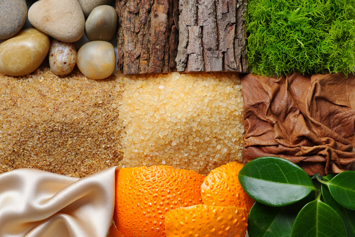 A close-up photography of a light beige marble surface with darker beige and gray veins