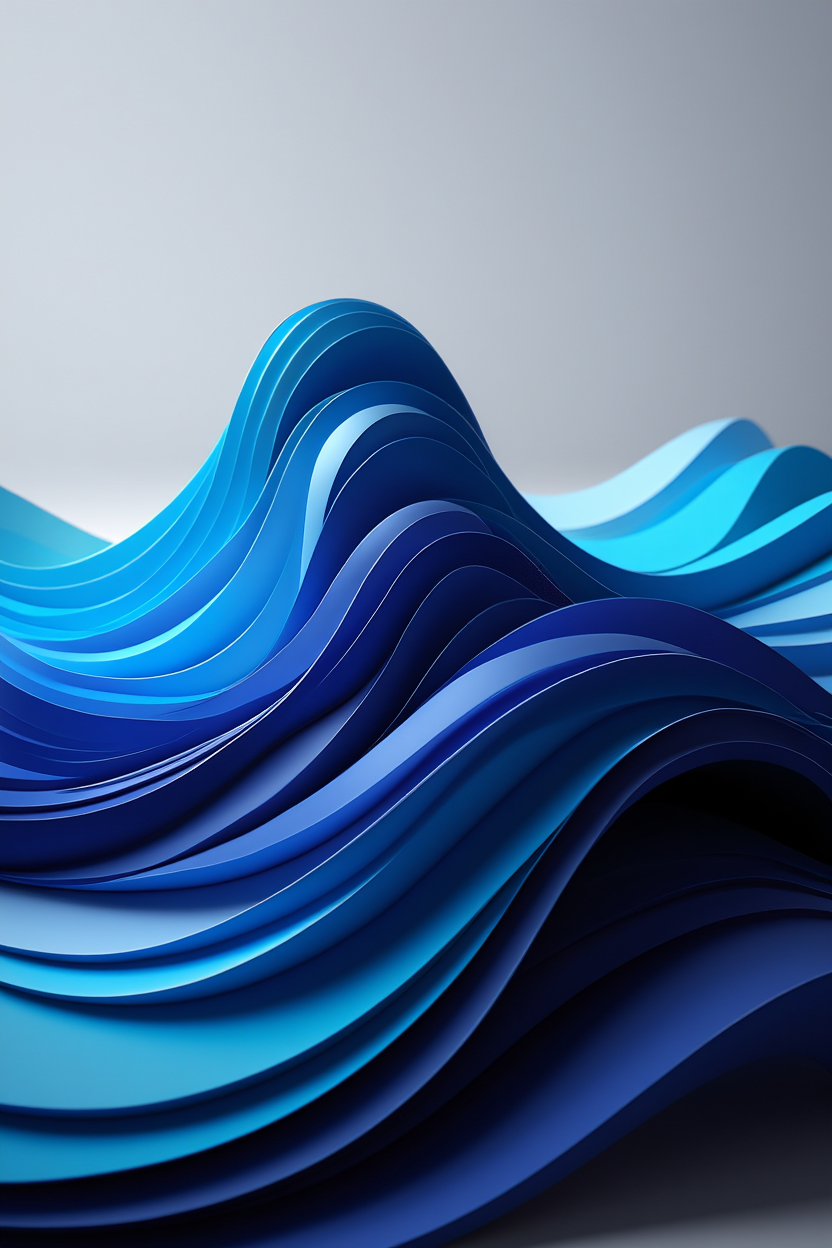 A macro photograph captures a horizontal wave formation with scattered water droplets against a gradient background transitioning from deep blue to rich purple. The high-speed capture reveals intricate details of water surface tension, with perfectly focused droplets suspended below the wave crest. The image demonstrates professional lighting techniques with artificial backlighting that emphasizes the transparency and dimensionality of the liquid elements. High-speed macro photography with studio lighting and crisp focus on liquid motion.
