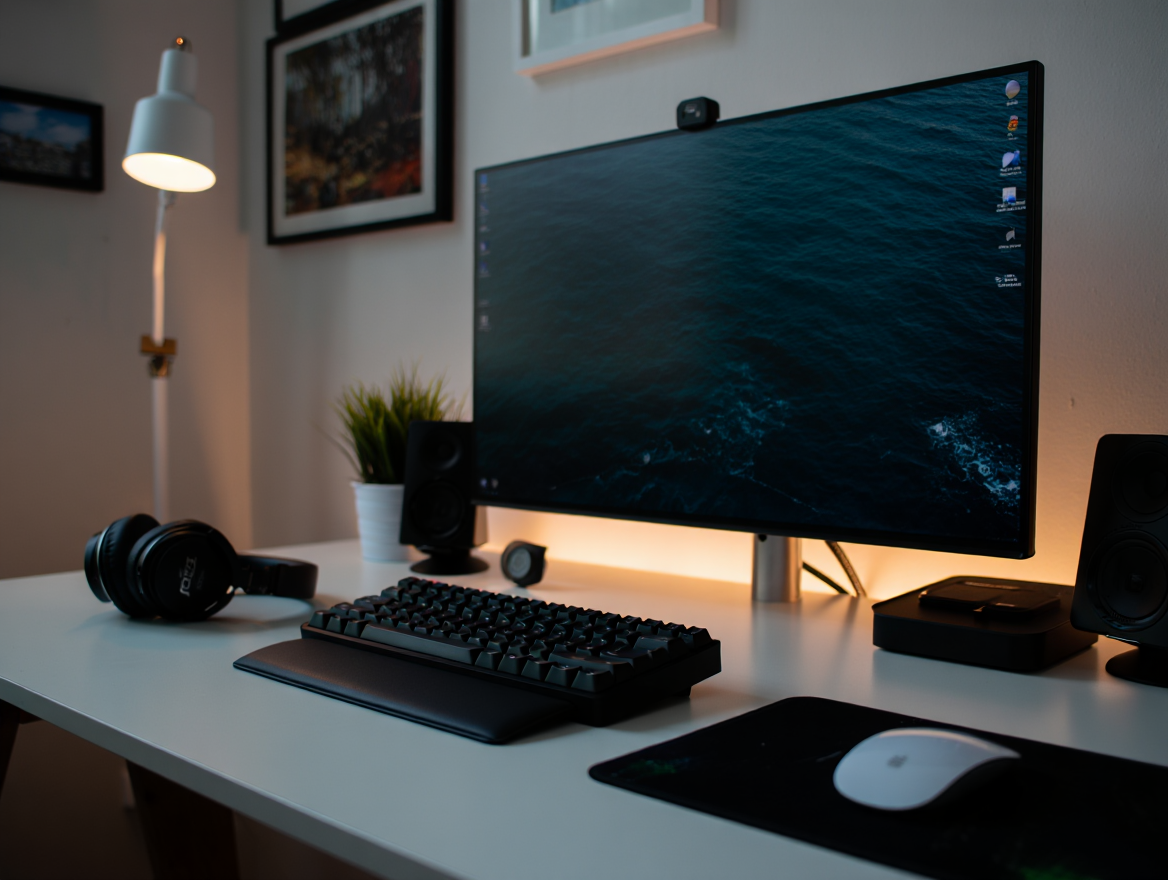 A modern office environment features a large white text reading "Technologies" mounted on a light grey wall