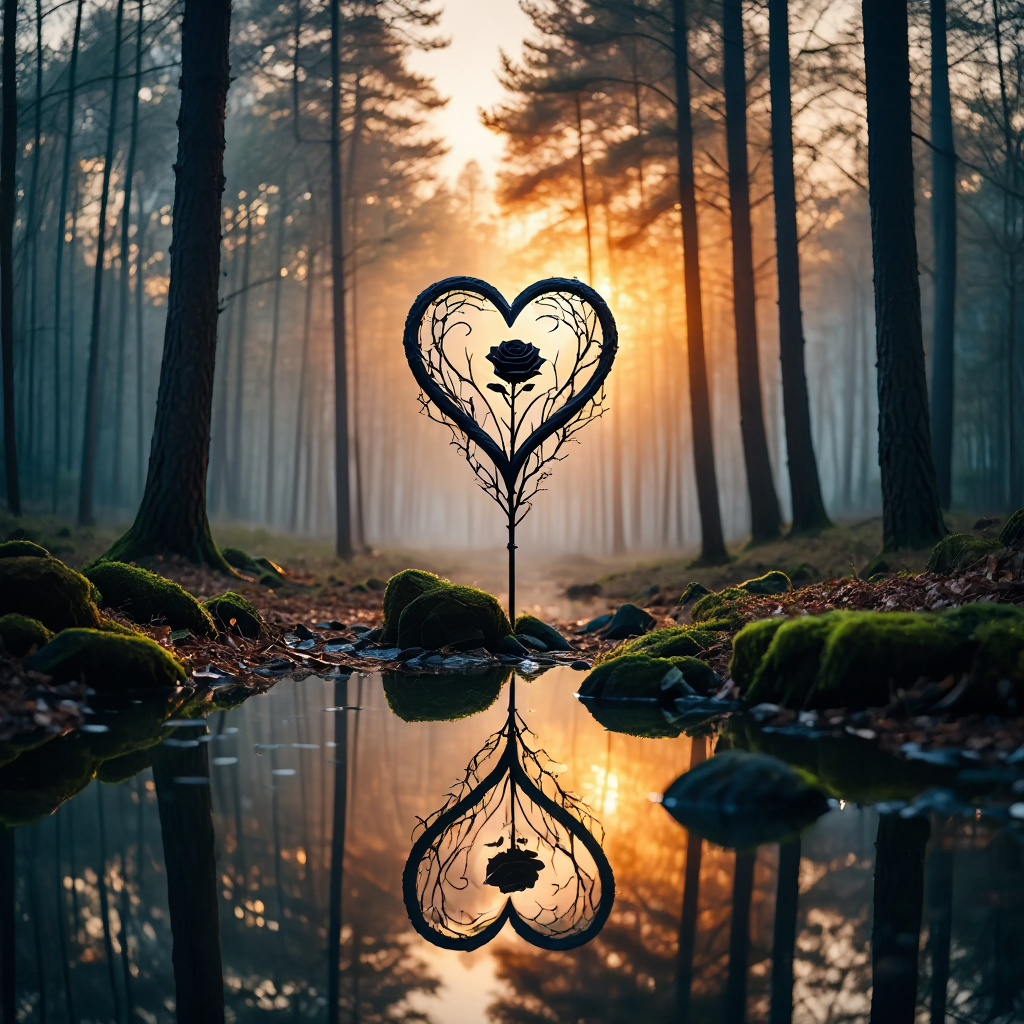 A nighttime forest scene centers on a clear glass mason jar positioned on a rough-textured wooden surface