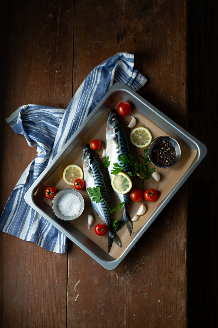 Multiple bright orange mushrooms of varying sizes emerge from a fallen brown wooden log on a forest floor