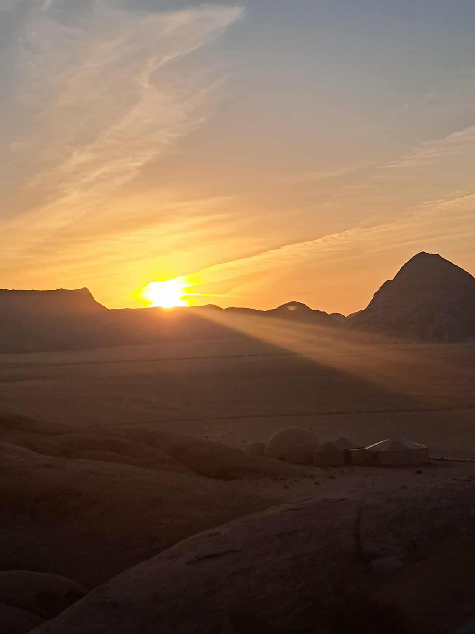 A high-angle, wide-shot night photograph of a snow-covered town nestled in a valley, with a vibrant green aurora borealis dominating the sky above snow-capped mountains. The deep depth of field keeps both the foreground houses and background mountains in sharp focus. The scene is illuminated by the aurora and the warm glow emanating from the windows of the houses. A person, likely female, stands in the snow between two houses in the foreground, wearing dark clothing. The houses have snow-covered roofs and wooden siding.