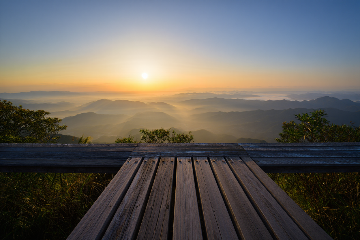 A coastal landscape photograph captured during sunset features a brilliant orange and golden sky with wispy clouds stretching across the horizon. The sun appears as a perfect bright disk just above the horizon line, casting a golden reflection across the ocean surface. Breaking waves roll onto the shore, creating patterns of white foam against the darker water, while the wet sand reflects the warm sunset colors like a mirror. The image is composed as a wide shot from a low angle, utilizing natural backlighting and maintaining deep depth of field throughout the frame. Wide-angle landscape photography with natural lighting and deep depth of field from a low camera position.