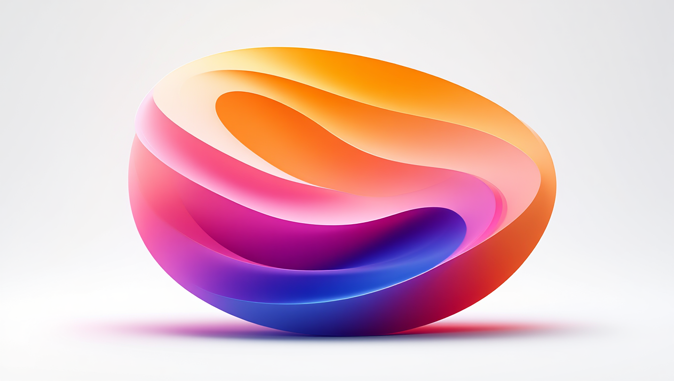 A semi-hollow body electric guitar serves as the centerpiece of the composition, positioned at the center against a pure black background. The guitar's body features a gradient finish transitioning from orange at the top, flowing into yellow in the middle, then pink, and ending in blue at the bottom, with polished chrome hardware elements including bridge, tailpiece, and tuning pegs. Two humbucking pickups mounted on the body flank a rosewood fretboard with metal frets. Dynamic paint splashes radiate outward from the guitar in bright blue, pink, orange, and yellow hues, creating circular patterns of liquid color against the black backdrop. Dramatic front lighting illuminates the guitar's glossy surface while maintaining deep shadows in the background. Product photography with dramatic studio lighting and centered composition against black backdrop creates high contrast between subject and background.