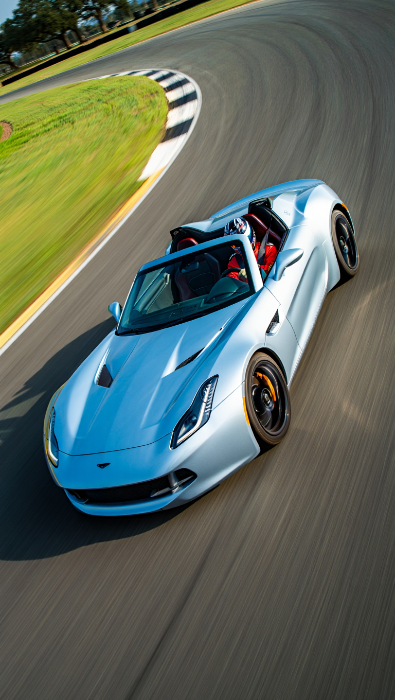 An overhead view of a Ferrari LaFerrari hypercar photographed in an industrial indoor setting