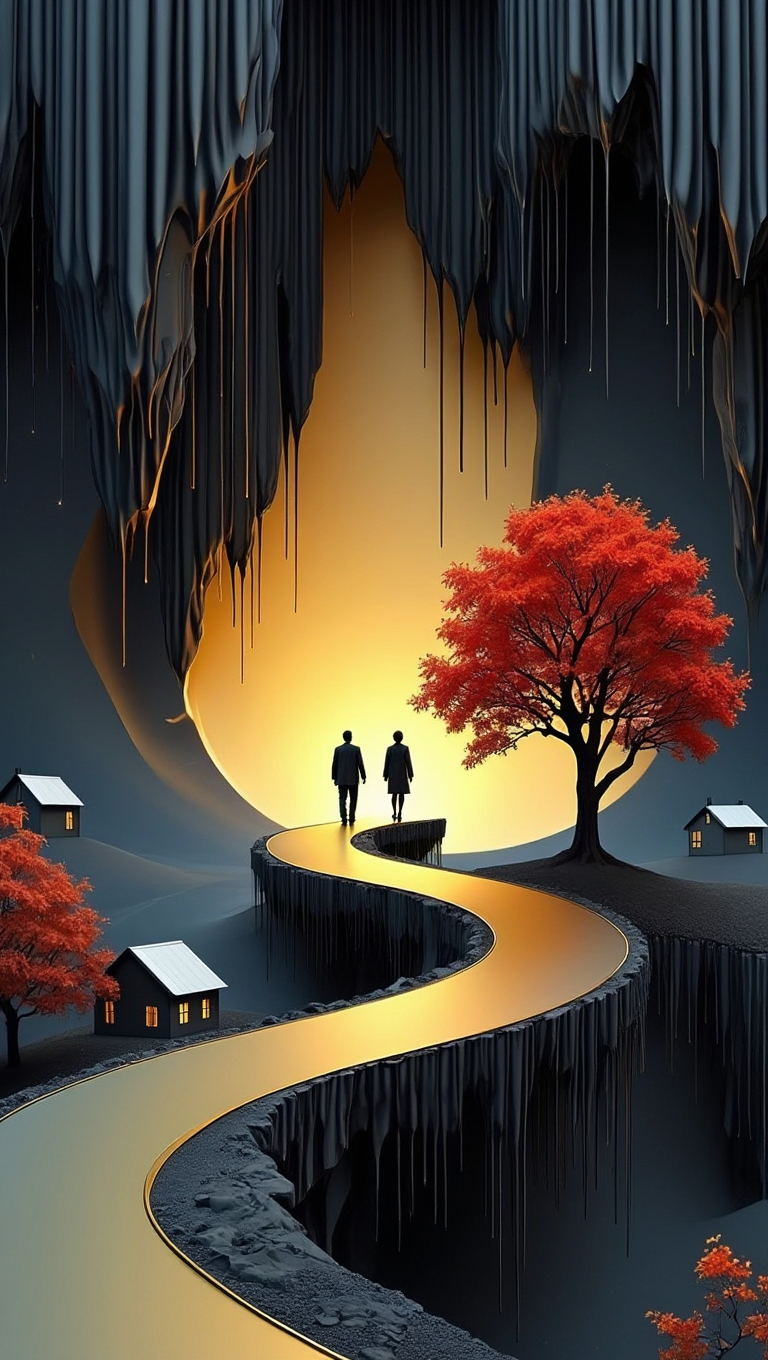A surreal digital art composition featuring a pale, ethereal female profile facing right, seamlessly merged with gnarled black tree branches that appear to grow from her head and neck. Four vibrant blue songbirds perch on various points of the branches, their electric blue plumage contrasting dramatically with the monochromatic elements. The composition is set against a clean white background, creating a striking interplay between organic and human forms. The lighting is artificial and side-directed, emphasizing the sculptural quality of the profile and the intricate detail of the branches. High-resolution digital art with sharp detail and dramatic side lighting against white background.